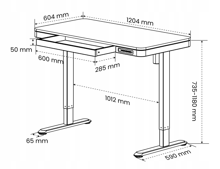 - Elektryczna regulacja wysokości 73,5–118 cm – cicha zmiana pozycji poniżej 50 dB, jeden przycisk, cztery zapisane ustawienia pamięci. Praca siedząca i stojąca bez kompromisów.