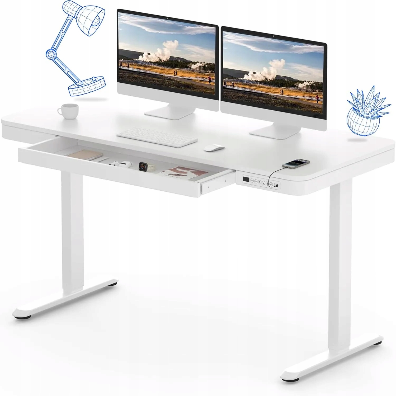 Zintegrowana szuflada pozwala utrzymać porządek na biurku, a porty USB eliminują konieczność używania dodatkowych ładowarek. Biały kolor i minimalistyczny design pasują do każdego wnętrza – od nowoczesnego salonu po domowe biuro.