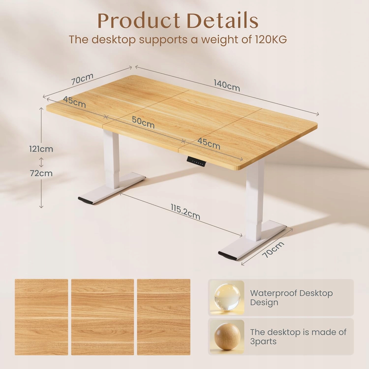 - Wymiary blatu: 140 x 70 cm
