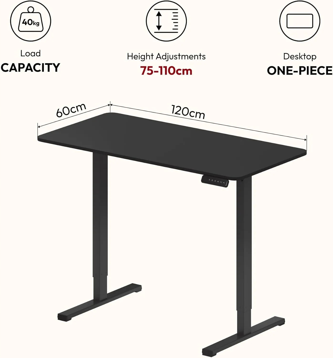 Nowoczesny design w czerni pasuje do biur, gabinetów, pokojów młodzieżowych i przestrzeni home office. Metalowa rama gwarantuje stabilność nawet przy intensywnym użytkowaniu, a niski poziom hałasu sprawia, że zmiana wysokości nie przeszkadza domownikom.