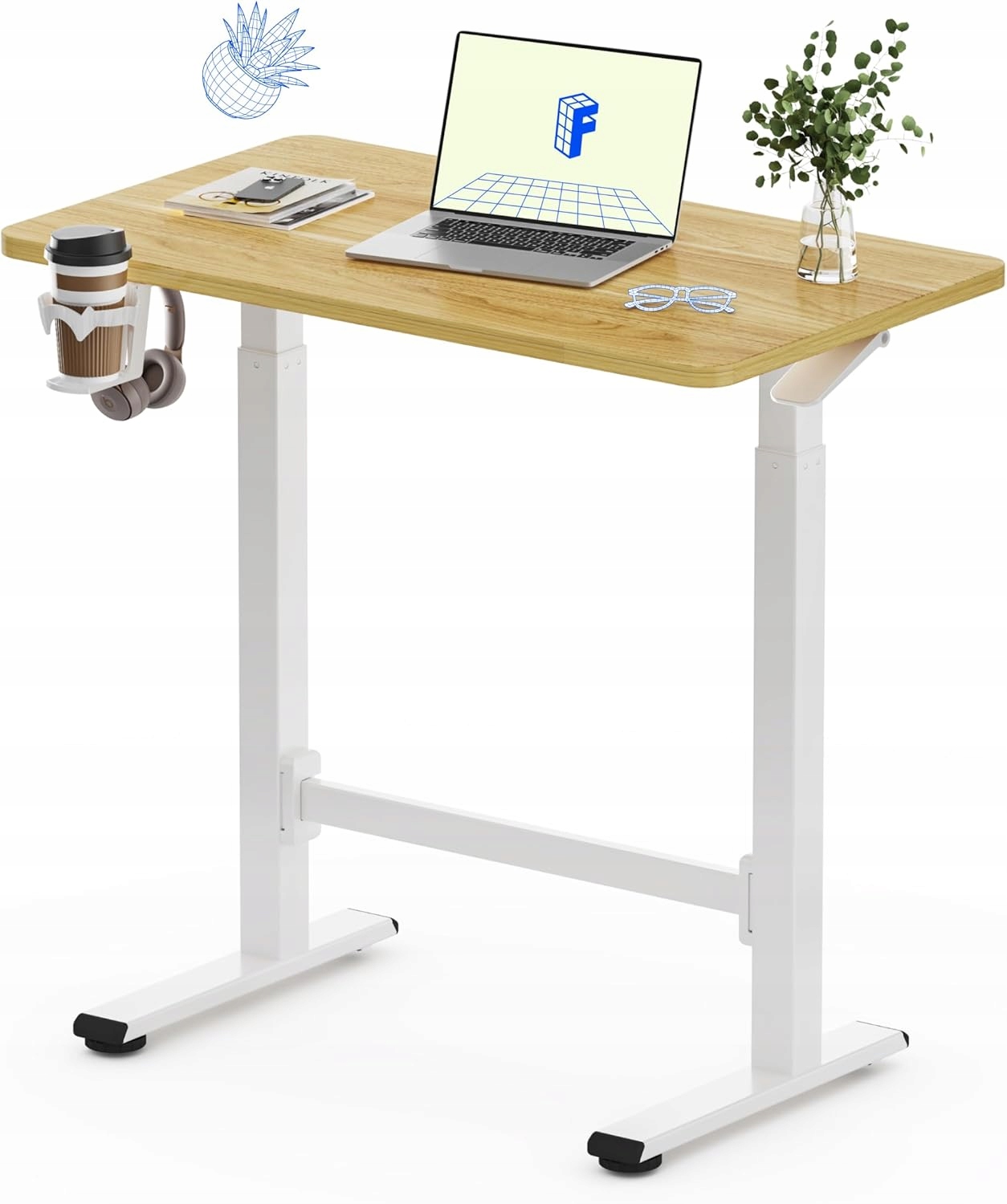 Funkcjonalne biurko regulowane, które pozwala łatwo zmieniać pozycję z siedzącej na stojącą. Bez kabli, bez silników – pełna wygoda i prostota użytkowania.