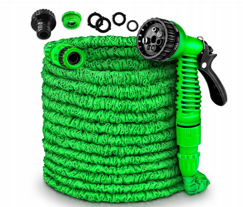 ELASTYCZNY WĄŻ OGRODOWY TRESKO 15M ROZCIĄGLIWY 8 FUNKCJI ZRASZACZ