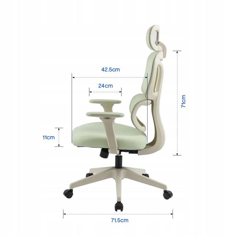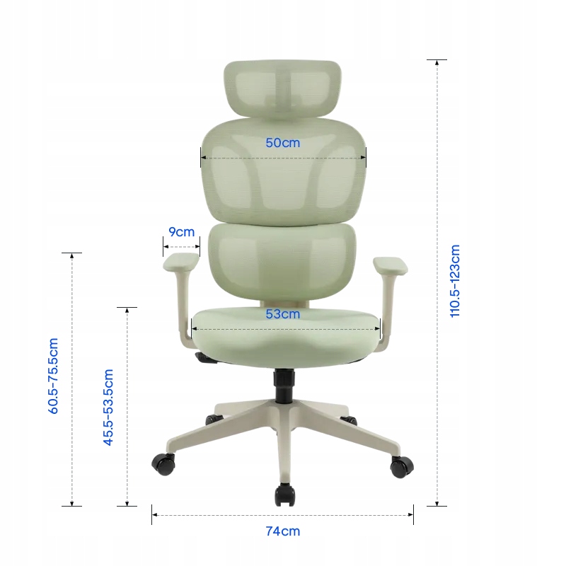 • Wysokość podłokietników: 60,5 – 75,5 cm