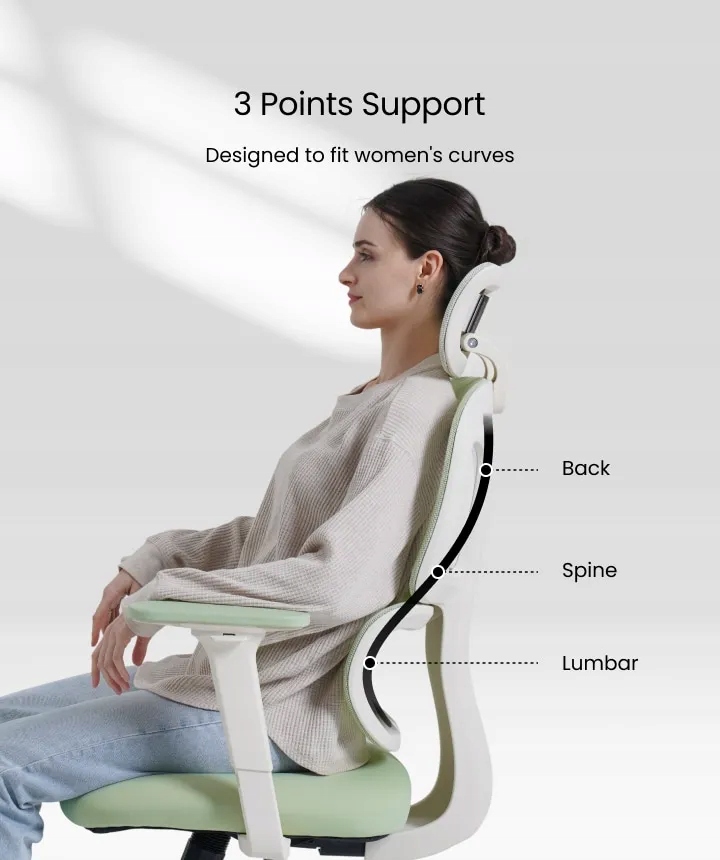 Krzesło FLEXISPOT BS5 w kolorze zielonym to połączenie dopaminowego designu z najwyższym komfortem siedzenia. Zapewnia wsparcie dla całego ciała – od szyi po dolny odcinek kręgosłupa – i gwarantuje wygodę przez cały dzień.