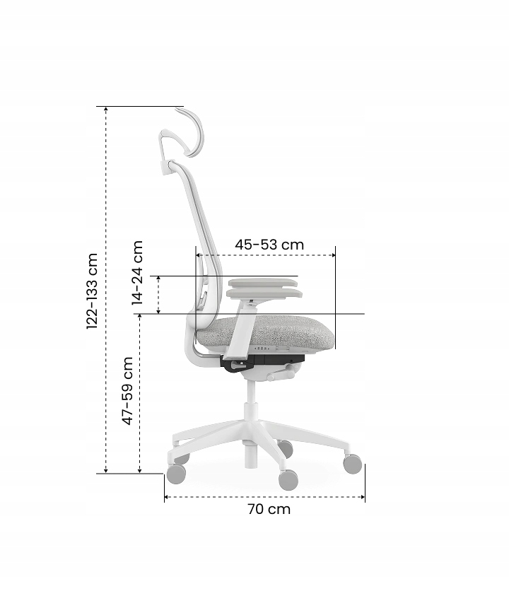 - Regulacja głębokości siedziska: 45 – 53 cm
