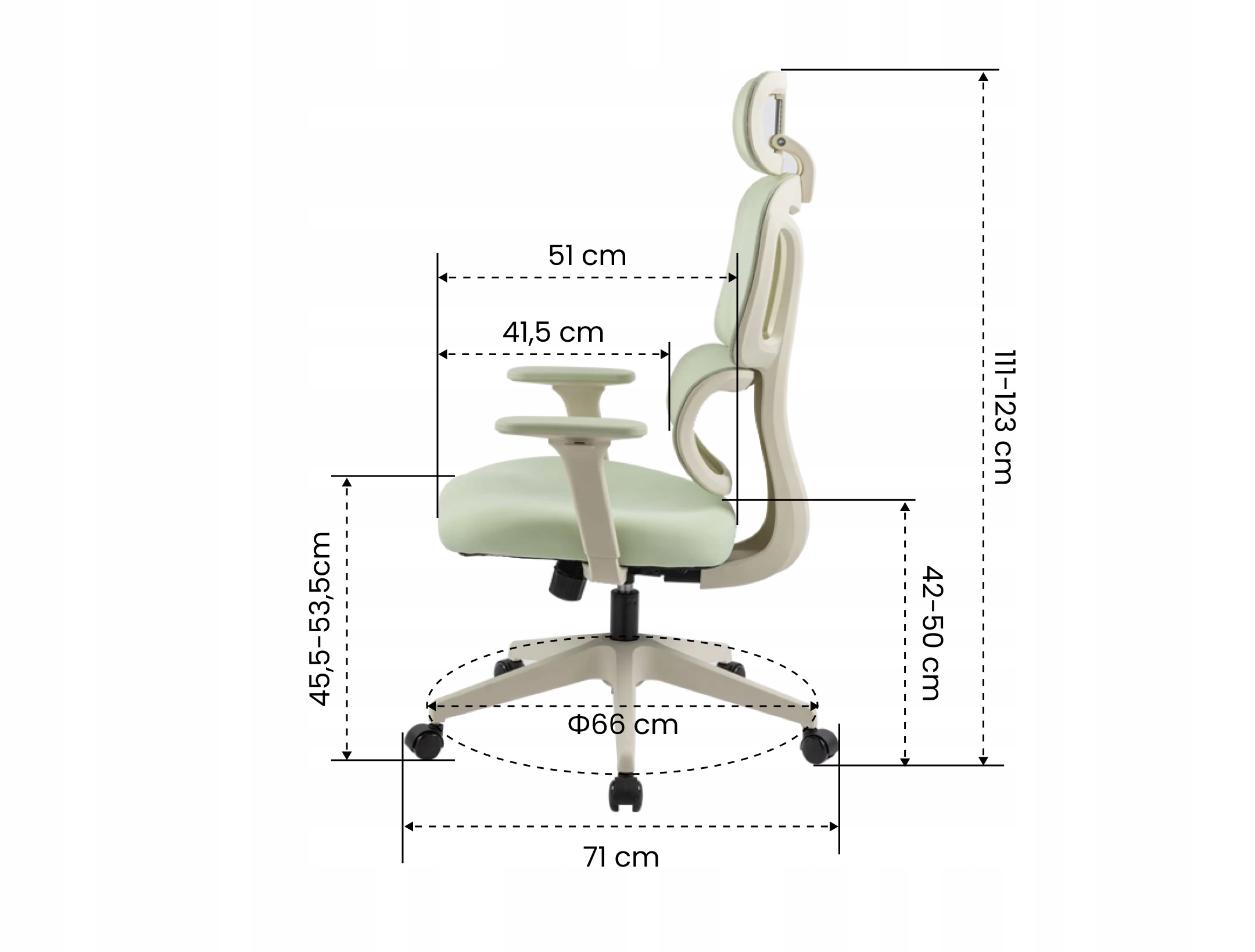 - Wysokość siedziska: ok. 45,5 – 53,5 cm