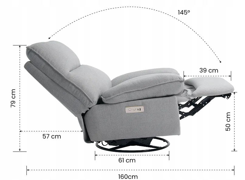 - Elektryczna regulacja oparcia i podnóżka – komfort obsługi jednym przyciskiem