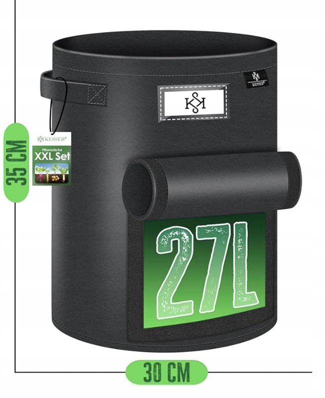 Oddychająca doniczka w formie worka o pojemności 27 litrów to świetne rozwiązanie do uprawy warzyw, ziół czy kwiatów. Dzięki solidnemu materiałowi i poręcznym uchwytom możesz z łatwością przenosić rośliny i zapewnić im najlepsze warunki do wzrostu.
