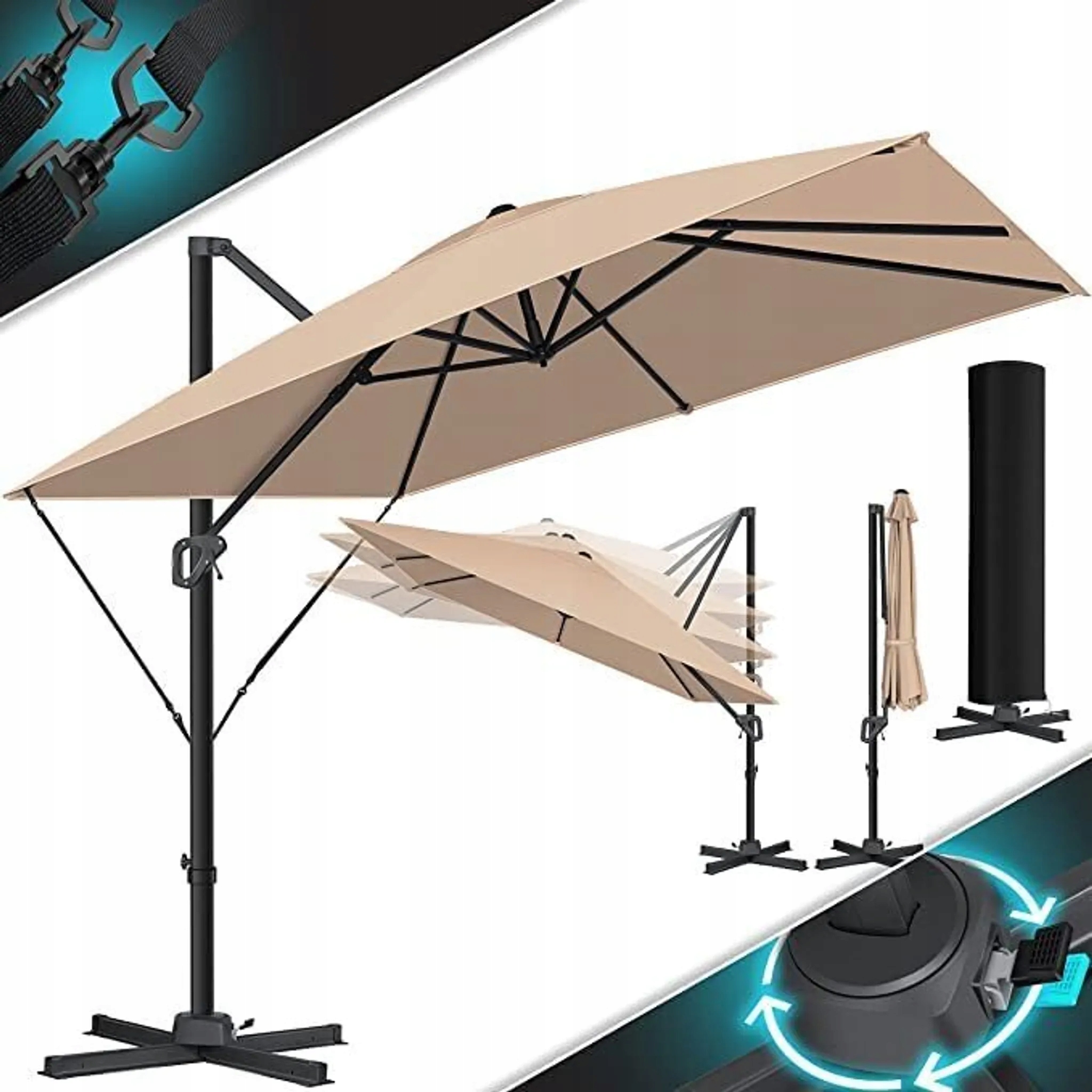 Parasol ogrodowy KESSER SUN XL to idealne rozwiązanie na taras, balkon czy do ogrodu. Dzięki dużej powierzchni 300 × 300 cm, obrotowi 360° i 7-stopniowej regulacji kąta zyskasz cień dokładnie tam, gdzie go potrzebujesz.