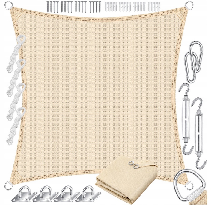 KESSER ŻAGIEL PRZECIWSŁONECZNY 3,6×3,6 M KREM HDPE UV WODOODPORNY