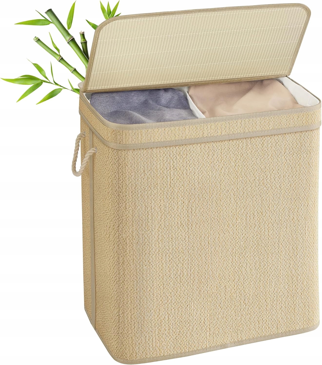 Kosz łączy ciepły styl boho z nowoczesną funkcjonalnością. Dzięki bambusowej obudowie i matowemu wykończeniu świetnie prezentuje się w różnych aranżacjach wnętrz. Pokrywa zabezpiecza zawartość przed kurzem i nieprzyjemnymi zapachami, a uchwyt ułatwia codzienne użytkowanie.
