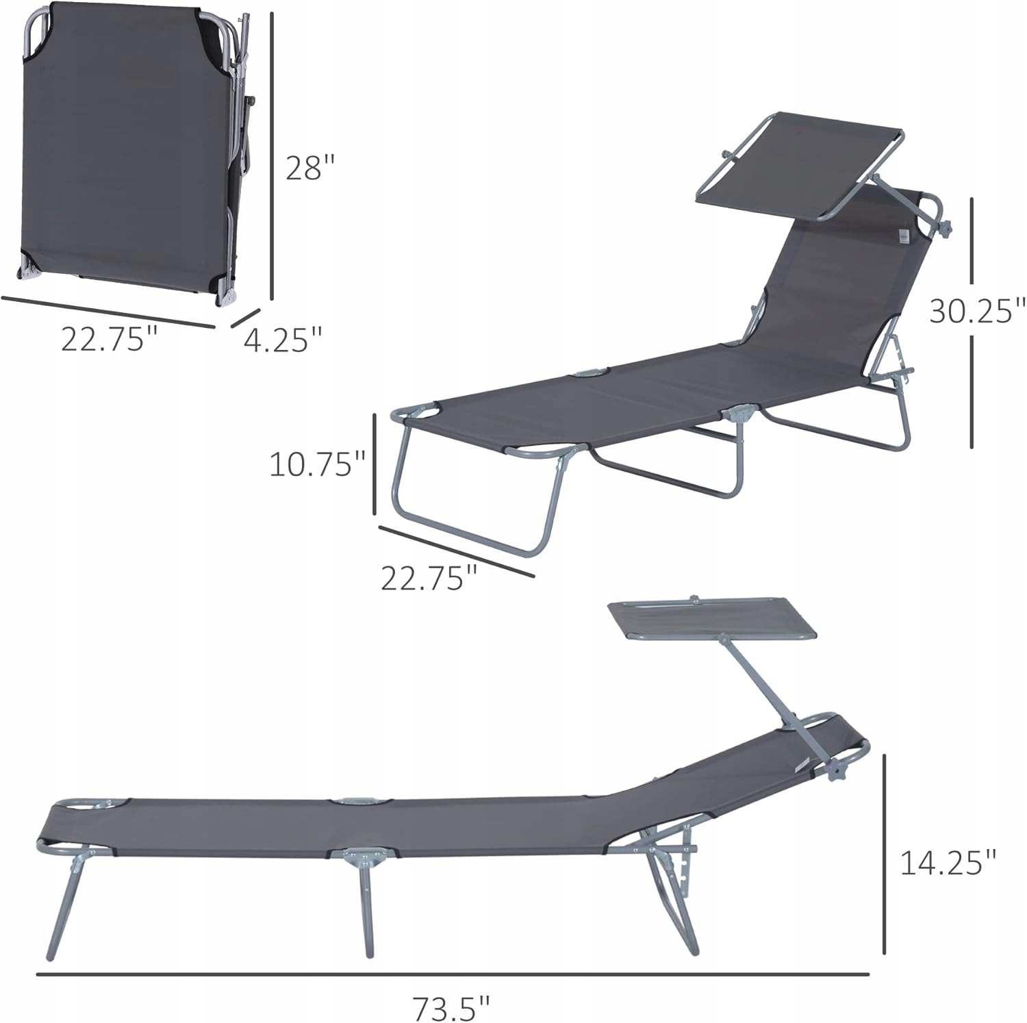 Leżak Outsunny z regulowanym daszkiem przeciwsłonecznym to doskonały wybór na balkon, do ogrodu, na plażę czy kemping. Składany, wygodny i stylowy – idealny do codziennego odpoczynku i wakacyjnych wyjazdów.