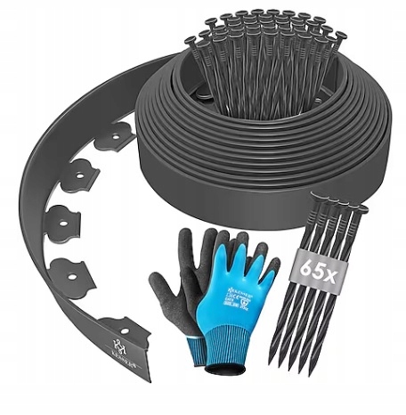 - Kompletny zestaw – 10 m obrzeża + 50 spiralnych kotew mocujących dla stabilnego montażu (uwaga: na zdjęciu podglądowym błędna ilość kotew – faktycznie paczka zawiera 50 sztuk).