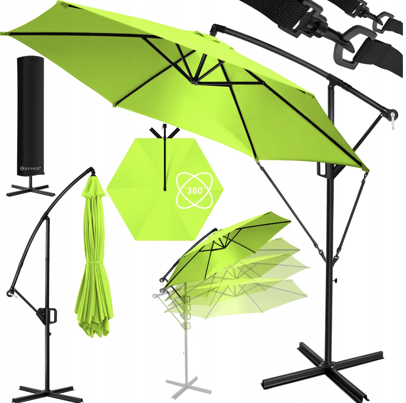 KESSER® PARASOL OGRODOWY 300 CM – ZIELONY, OBROTOWY, Z KORBĄ I OCHRONĄ UV!