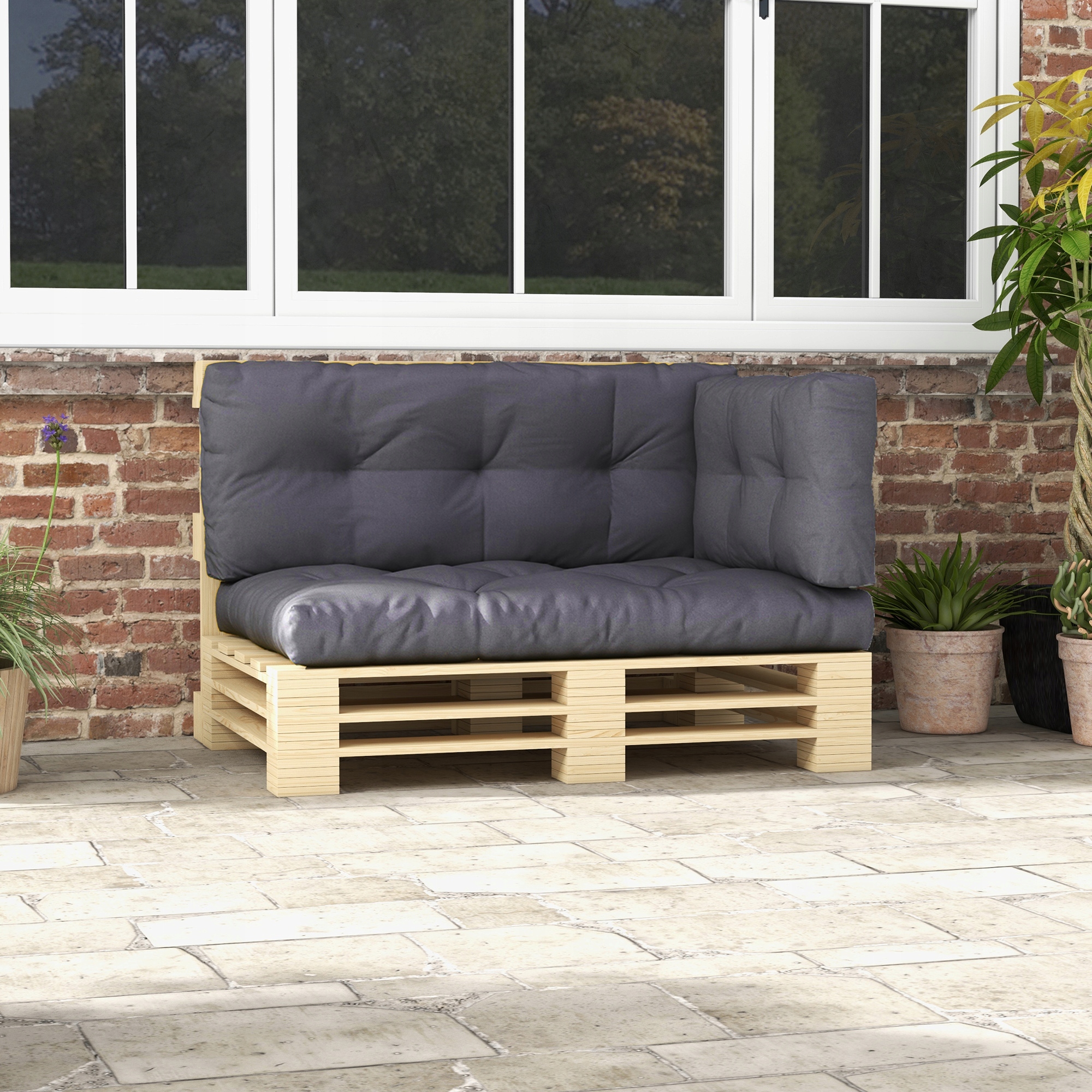 Zestaw Outsunny pozwala w prosty sposób stworzyć modne i wygodne miejsce do relaksu na świeżym powietrzu. Idealnie pasuje do mebli z europalet i siedzisk o wymiarach 120 × 80 cm. Dzięki odpornym materiałom posłuży Ci przez wiele sezonów.
