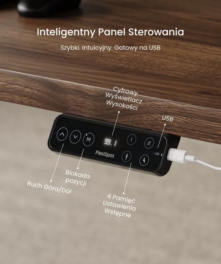 - Port USB – wygodne ładowanie telefonu lub akcesoriów przy biurku