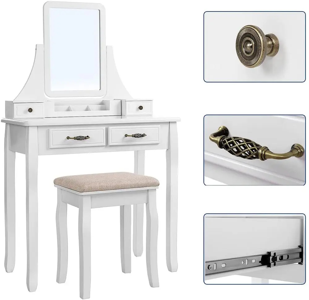 Toaletka VASAGLE to nie tylko mebel – to Twoja codzienna przestrzeń do relaksu i pielęgnacji. Biała, klasyczna forma z rustykalnymi akcentami sprawdzi się w każdej sypialni czy garderobie.