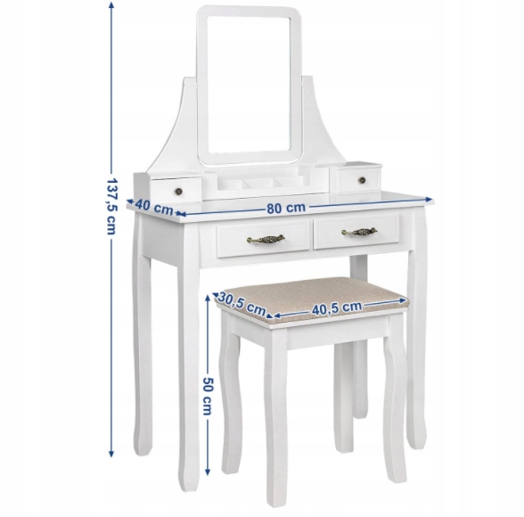 - Wymiary toaletki: 80 × 137,5 × 40 cm (szer. × wys. × gł.)