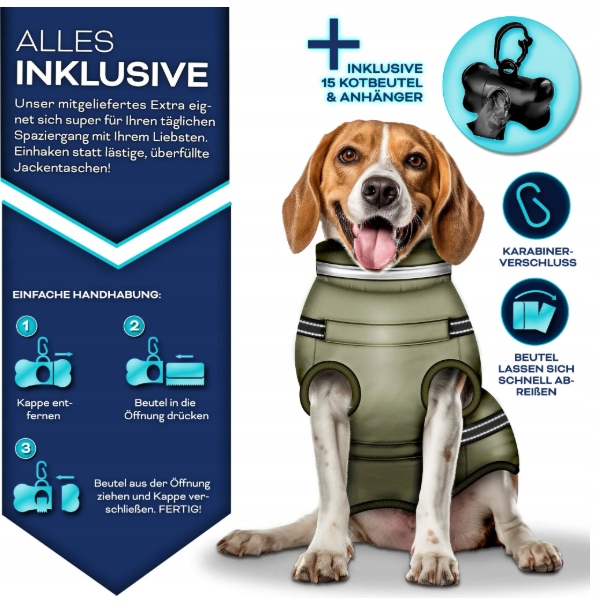 TRESKO® Kurtka zimowa dla psa XXL z szelkami + 15 woreczków na odchody