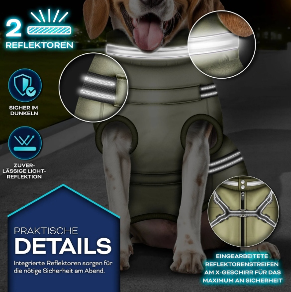 ✔ Odblaski na kurtce i szelkach – lepsza widoczność po zmroku