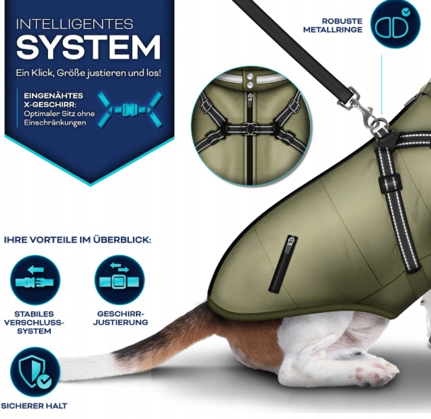 ✔ Wbudowane szelki (X-Geschirr) z metalowym kółkiem na smycz