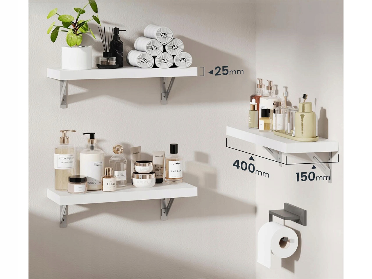 - ✅ Wymiary każdej półki: 400 × 150 × 25 mm